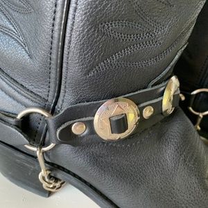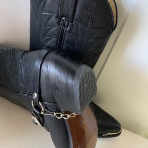 Stylish black heeled boots. Intricate stitching. Durable design.