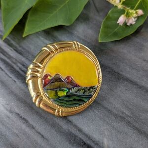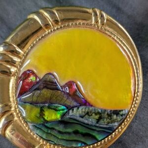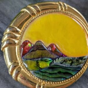 Duri Brooch Abalone Landscape Scene Circular 3D Art Deco Half Moon Crescent