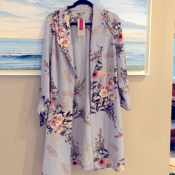 A perfect spring/ summer topper. Grey with flowers. Sleeves can be worn long or tied up.