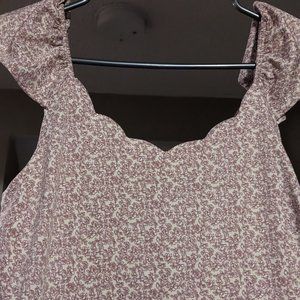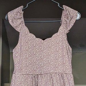 Romantic and sweet dusty pink dress with ditsy floral pattern.