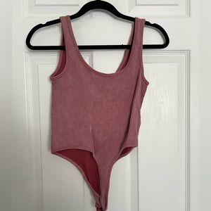 Perfect for a comfortable but classy look, the thick ribbed material is stretchy yet timeless. Dusty rose coloured, vibrant and beautiful. Lightly worn, strong snap buttons at bottom.