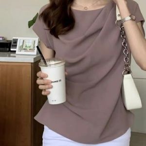 Dusty Rose Short Sleeve Cowl Neck Blouse