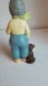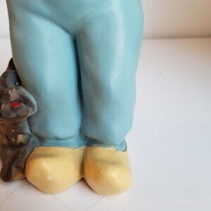 Dutch Boy Figurine with Dog Chalkware Rare 9” Tall Home Decor Vintage 60s