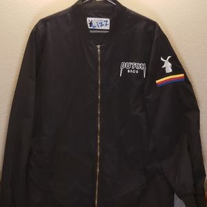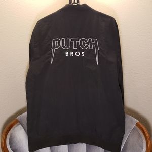Super cool limited edition (Shirt of the Month, January 2019) Dutch Bros Dutchwear black rocker bomber windbreaker. Rock and roll style font. One of my favorite peices. (Name written on onside tag but otherwise great condition)