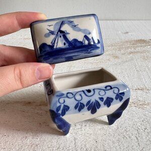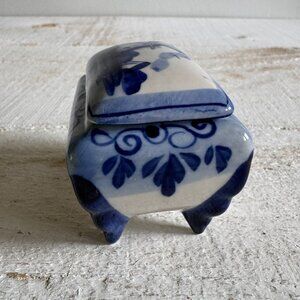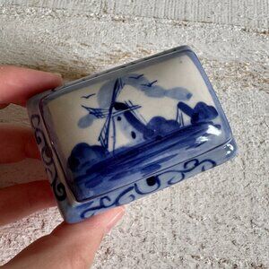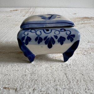 Dutch Delft Blue and White Trinket Box with Lift-Off Lid