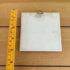 Vintage Dutch ceramic wall tile has a charming printed design of a windmill scene. Approx. 4 1/4" square. Back of tile has a symbol on the back with a "G" in the center next to numbers "322". Pre-owned condition: stick-on metal hanger on back has been reinforced with glue - see photo.