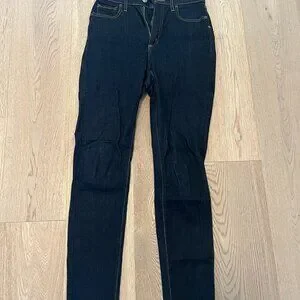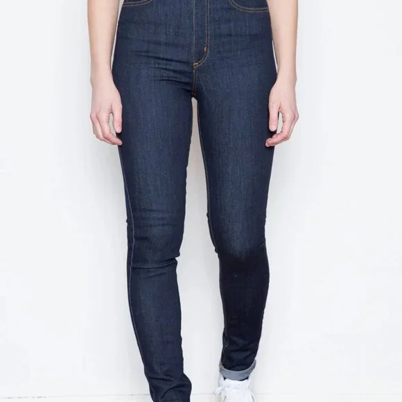 This High Rise Skinny is made from a comfortable and sustainable washed, indigo-dyed fabric that is sleek and versatile. The fabric's 91% cotton composition means that this jean has a structured denim-y feel without sacrificing any comfort. The denim has been finished off in a high-rise, skinny cut that is flattering and timeless.