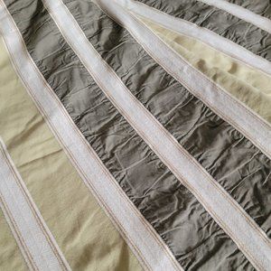 Duvet cover, EUC, Queen Size but pls see measurements to satisfy yourself. Has a striped design on the front, in green, yellow and white. Heavier cotton top, with button closure at base. Underside is a solid green. Ties on the interior on all 4 corners. Quality fabrics!! Great for a cottage or cabin/bunkie!!