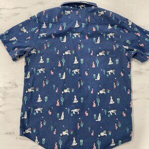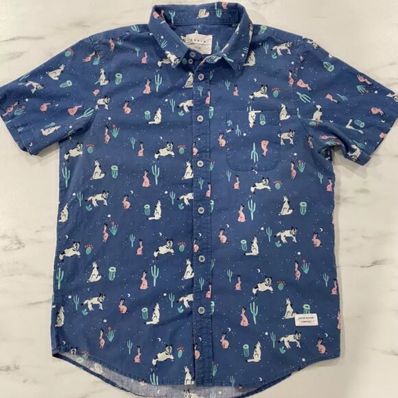 Duvin Casual Short Sleeve Dress Button Shirt Mens Size Large Graphic Rabbit Wolf