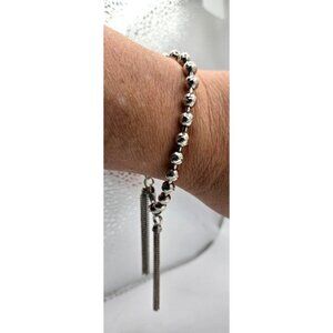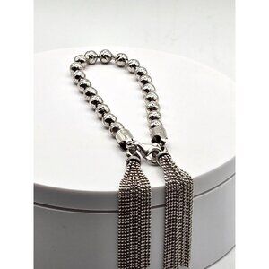 Stunning and unique Sterling Ball Chain Bracelet with long tassels. Signed italy 925 and Dyadema. 7 inches.