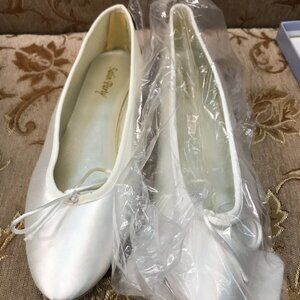 Dye-Able White Satin Ballet Flats, w/ Bow Formal Elegant Wedding Comfortable