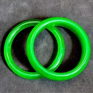 Set of two vibrant green bangles. Dyed quarts in excellent condition. *Not Jade* Perfect for adding a pop of color.