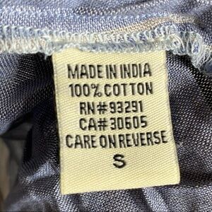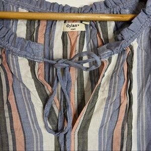 Dylan Boho Flowy Cotton Jean Striped Short Sleeve V Neck Ties Top Small S