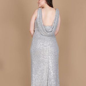 This is a beautiful long formal gown. It features a 0 bodice and a sexy thigh-high slit.