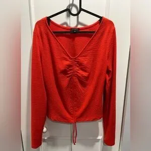 - Stylish long sleeve top with a flattering ruched front