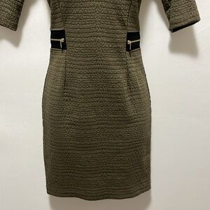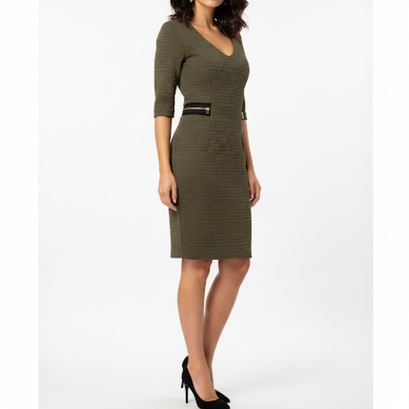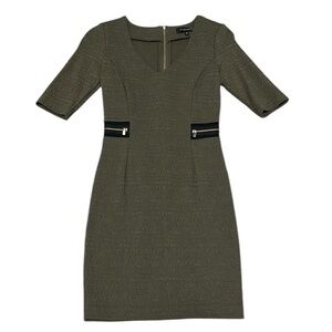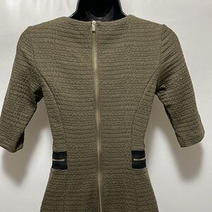 Dynamite Olive Green Quilted Sheath Dress with Zipper Details
