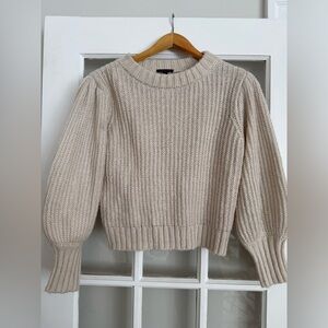 Cozy ribbed sweater. Puff sleeves. Crew neckline. Perfect for layering.
