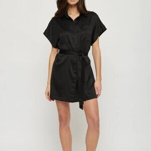 Dynamite Belted Satin Shirt Dress