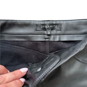 Chic and modern faux leather pants. Perfect for a night out or casual day. Sleek and stylish design.
