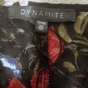 Beautiful ladies wrap dress from Dynamite. This is a mini style dress. Size is extra small (XS) but it is an adjustable wrap dress so it will likely fit a small (S) as well. It is in excellent condition. No rips, no tears, no stains. Machine washable. Goes great with tights in the winter or with bare legs on a warmer fall or spring day. Great for many seasons.