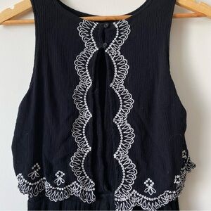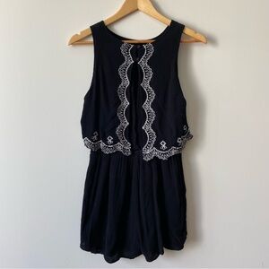 Dynamite Black Lined Romper Crochet Details Keyhole Back Elastic Waist