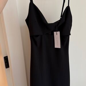 Chic black midi dress with a sleek silhouette. Perfect for elegant occasions.