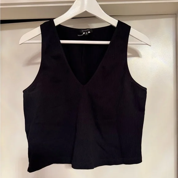 Dynamite Black Ribbed V-Neck Tank Top