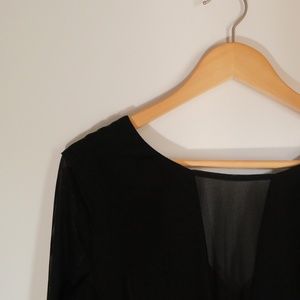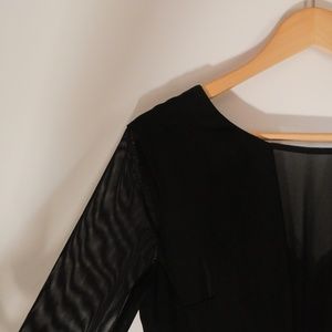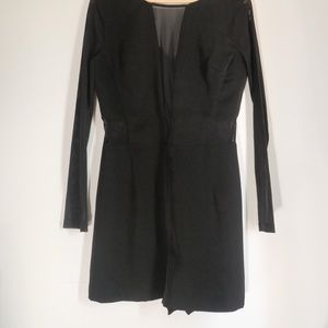 This black romper's middle chest area is a mesh as well as the sleeves. Has zipper on the back and will give you a very sexy look.