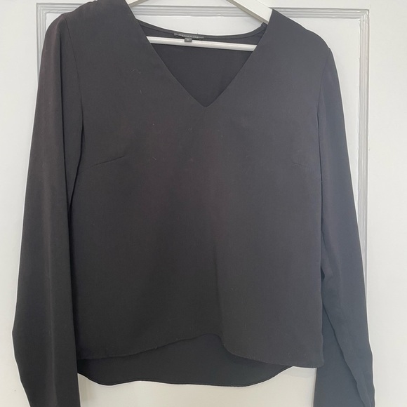 Chic black blouse with V-neck. Long sleeves. Perfect for versatile styling.