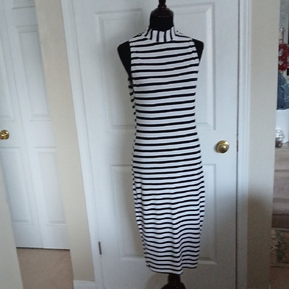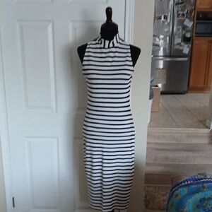 Dynamite Black and White Striped Midi Dress