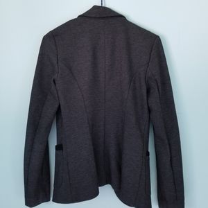 Super cute blazer! Dark grey, heavier material great for fall/winter. Button closure. Size XS. Like new! Absolutely love, but too small for me!