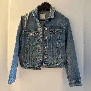 Classic blue denim jacket. Features button closure. Includes front pockets. Fits more like a small.