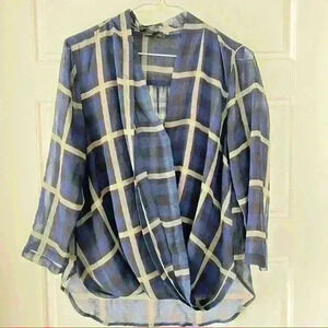 Dynamite Blue Tartan PLAID Sheer Blouse
