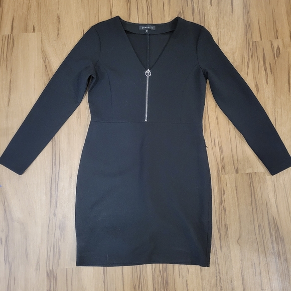 dynamite bodcon dress zipper at chest and side size L very flattering black