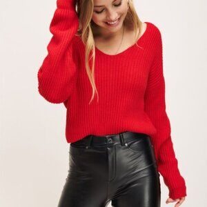 Dynamite Bold Red V-Neck Knit Sweater With Knot Detail At Back In Size Small EUC