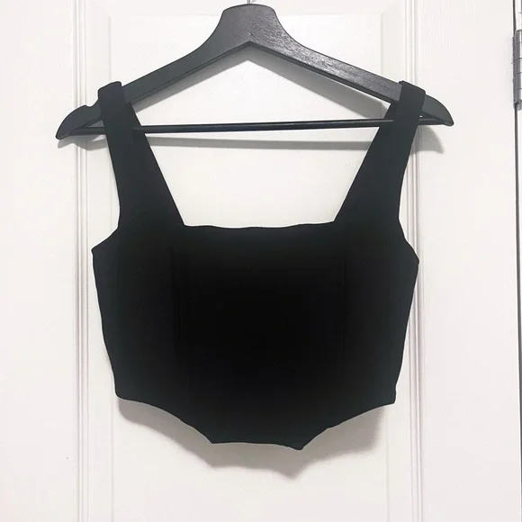 Dynamite bustier with light boning and zipper closure on back Size small but fits about a B cup and a 24-25” waist.