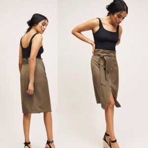 Dynamite Button Front Midi Skirt Asymmetrical Front Tie Olive Medium