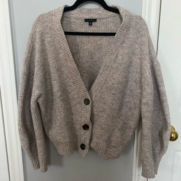 Cropped cardigan - Size L - Pink & grey marl - Good condition - Gently worn