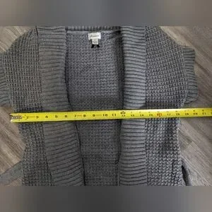 Dynamite short Sleeve cardigan. In great pre-loved condition. No flaws. I'm not sure the exact size of the sweater but it fits like a S/M. Please check measurements to be sure the size is correct.... Measurements taken laying flat.