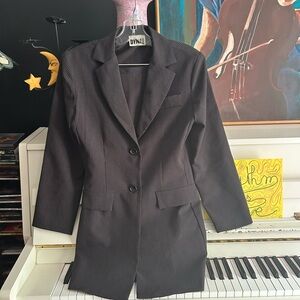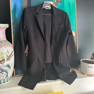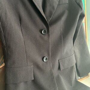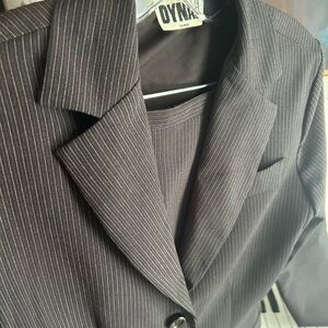 Sophisticated charcoal pinstripe skirt set from Dynamite. Ideal for office wear. Modern and stylish.