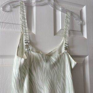 This sophisticated cream slip dress by Dynamite is designed for wedding guests and cocktail events. It features a sleeveless silhouette with delicate spaghetti straps and a flattering v-neckline. The midi length and sleek design make it a timeless choice for elegant occasions.