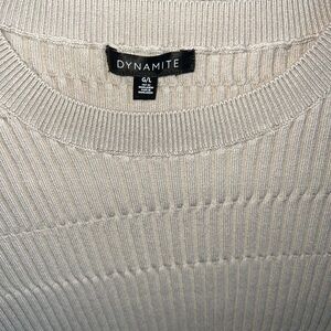 Dynamite Cream Ribbed Crew Neck Sweater