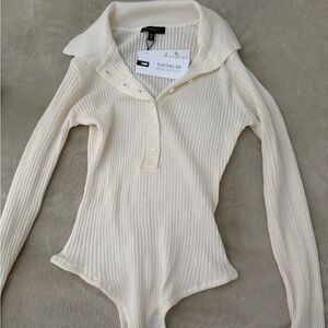 Ribbed bodysuit, it is more on the sheer side. Never worn from a smoke free home.