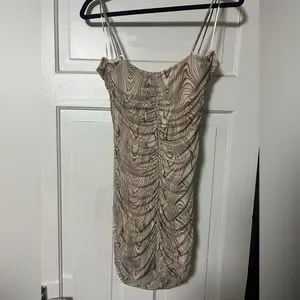 Dynamite Cream Ruched Mesh Mini Dress, Size L. Worn once