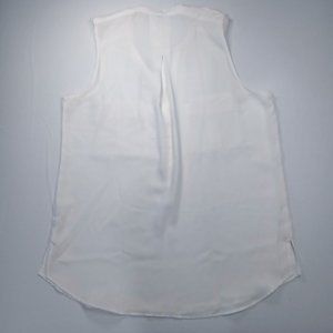 Dynamite white, sleeveless blouse. It has a V-neck button front, and pockets on the chest.