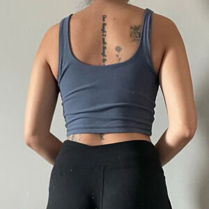 This cropped tank top is designed to effortlessly enhance your style. The blueish-grey shade adds a touch of sophistication, making it a versatile piece for various occasions.