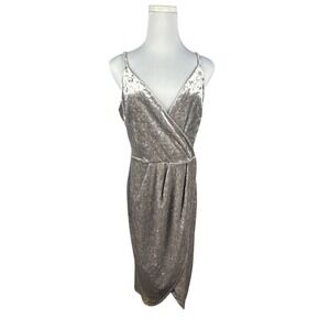 Chic and sophisticated lace midi dress. Features a fitted silhouette and delicate lace texture. Ideal for elegant occasions.