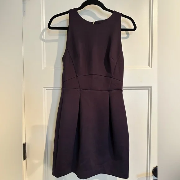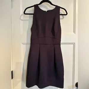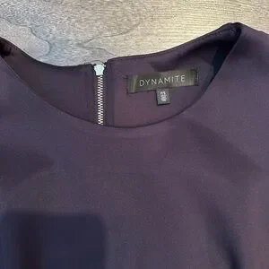 Dynamite mid-length dress. Exposed zipper. Tulip skirt bottom. Scuba-like material. Eggplant colour.