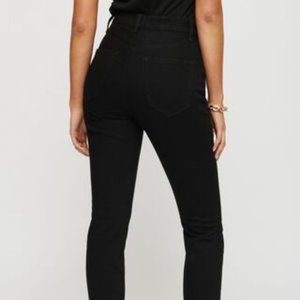 Size 27, perfect high waisted jean, true black color which is nice for dressing them up/going out