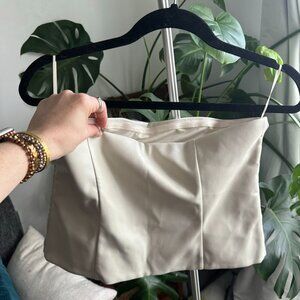 This is a strapless ruched top - Designed with smooth vegan leather.